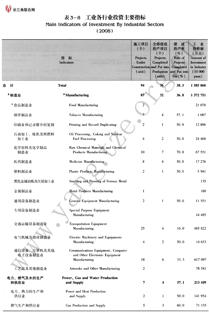 工业各行业投资主要指标(2008)