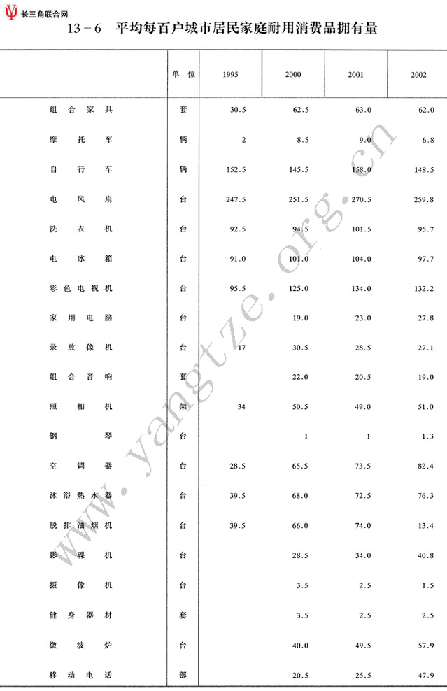 平均每百户城市居民家...