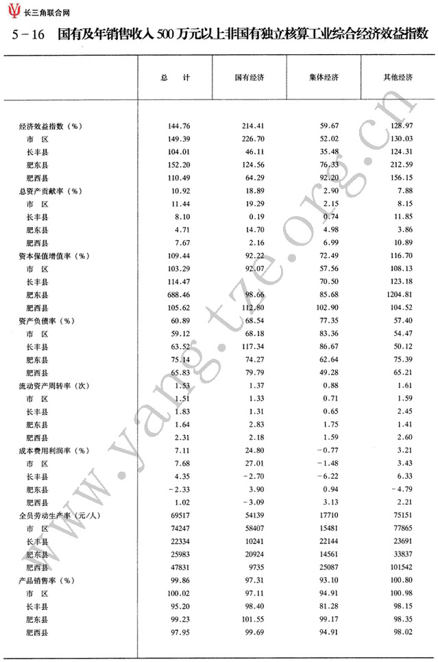 国有及年销售收入500万元以上非国有独立核算工业综合经济效益指数