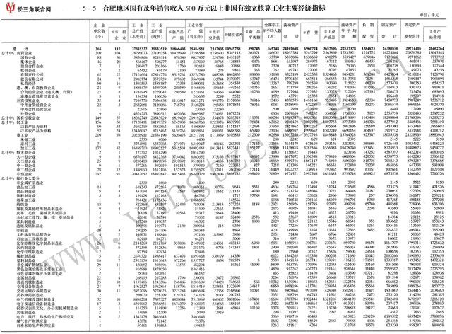 合肥地区国有及年销售收入500万元以上国有独立核算工业主要经济指标