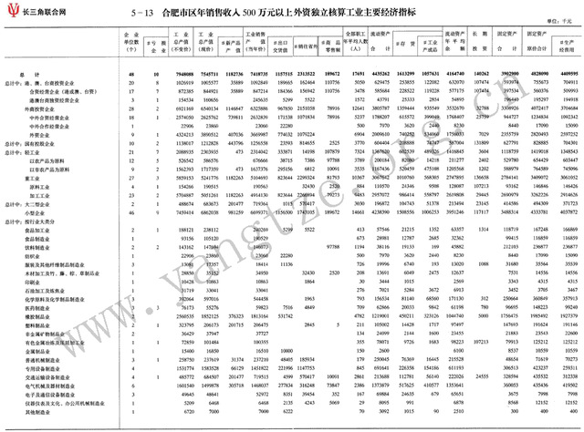 合肥市区年销售收入500万元以上外资独立核算工业主要经济指标