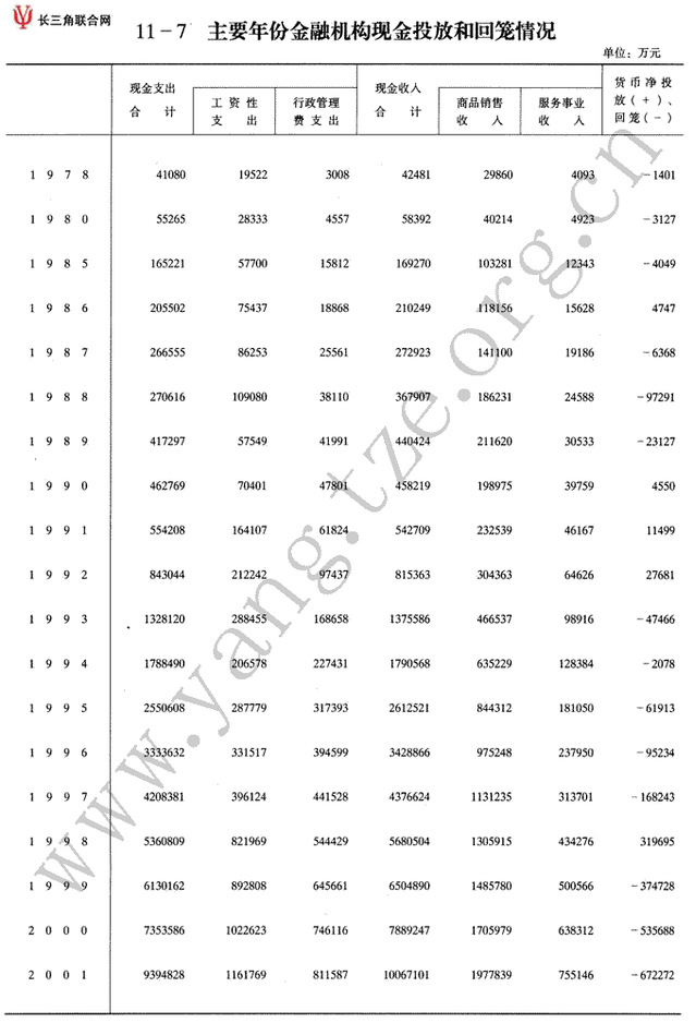 主要年份金融机构现金...