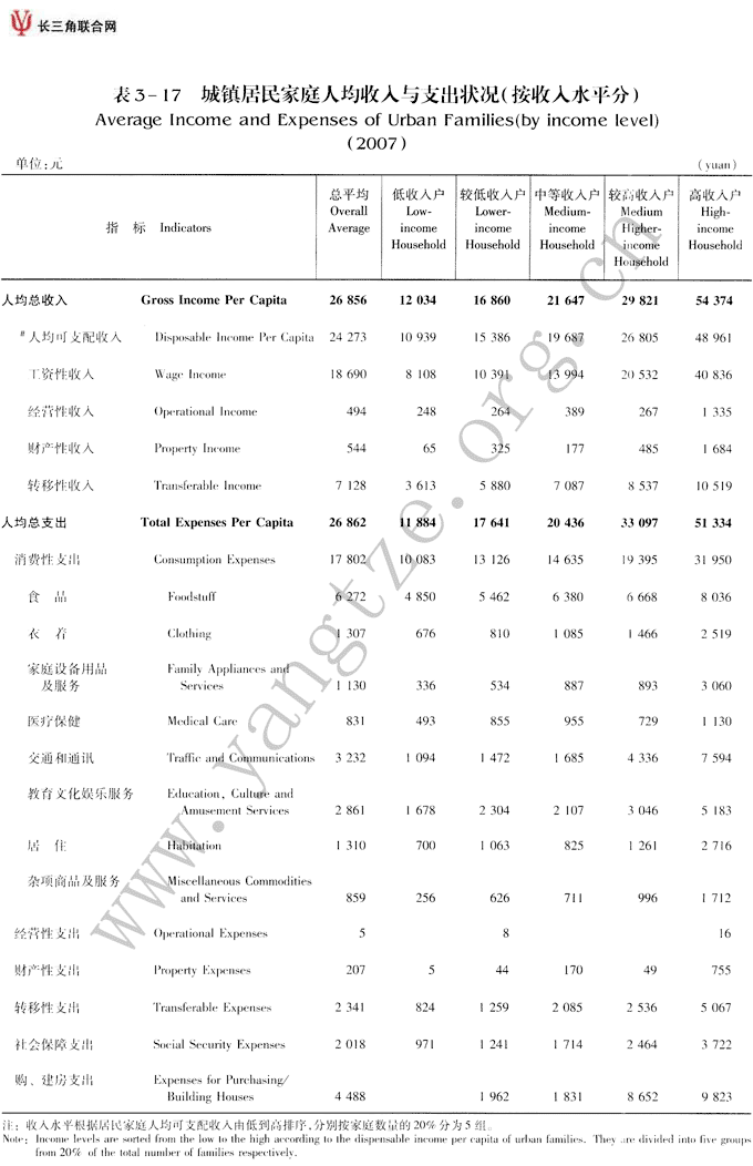 城镇居民家庭人均收入与支出状况(按收入水平)