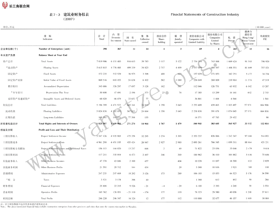 建筑业财政报表(2007)