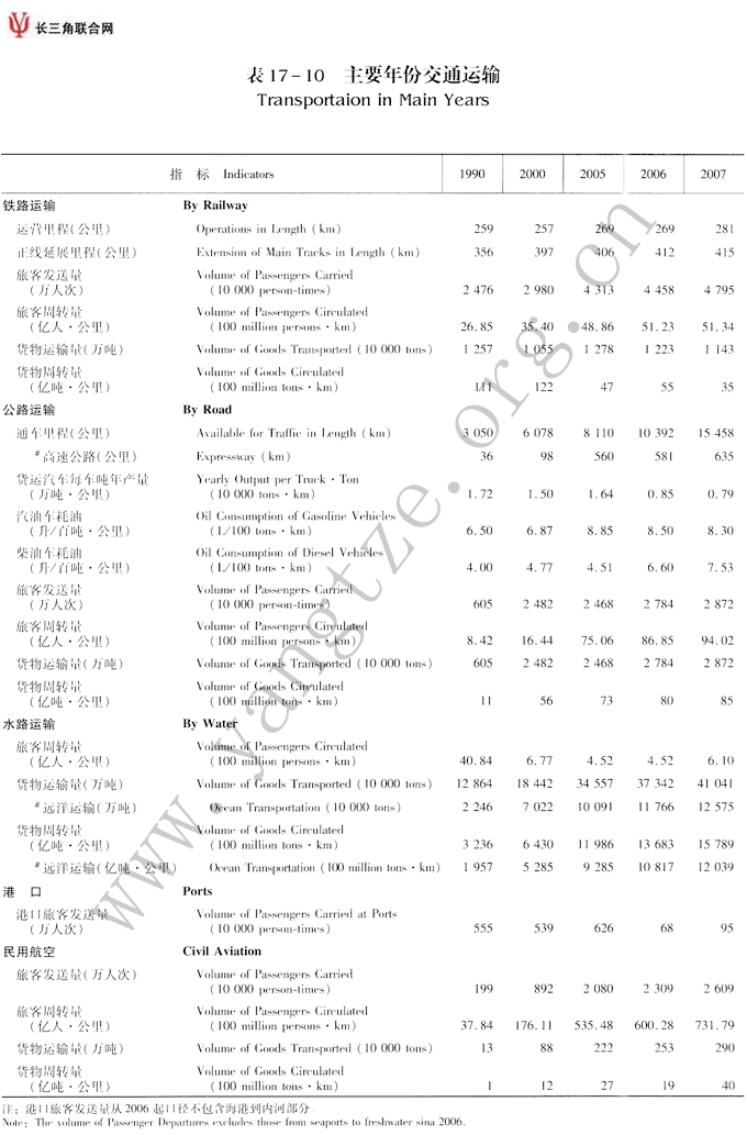 主要年份交通运输