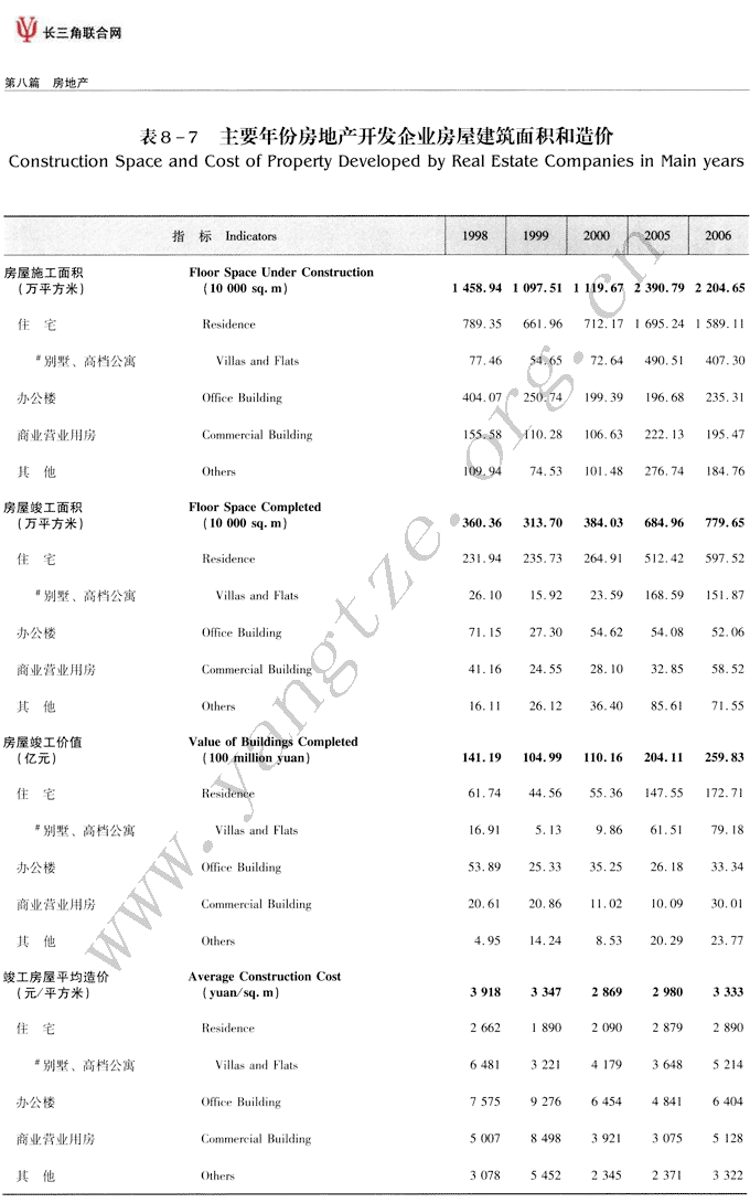 主要年份房地产开发企业房屋施工面积和造价