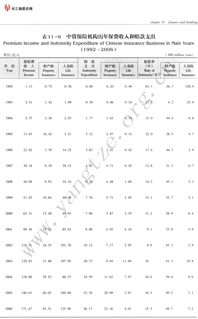 中资保险机构历年保费...