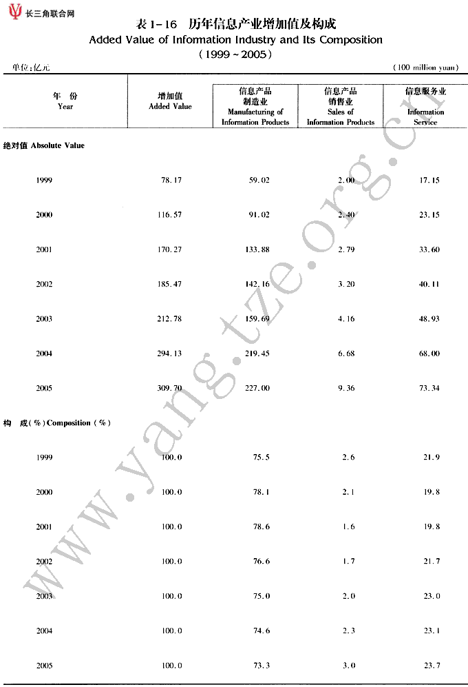 当前位置:首页 > 统计年鉴 > 上海 > 浦东新区 (2006) > 综合 > 历年信息产业增加值及构成(1999~2005)