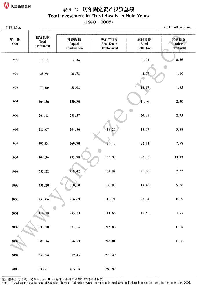 历年固定资产投资总额(1990~2005)