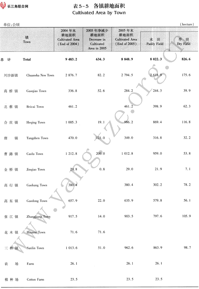 各镇耕地面积
