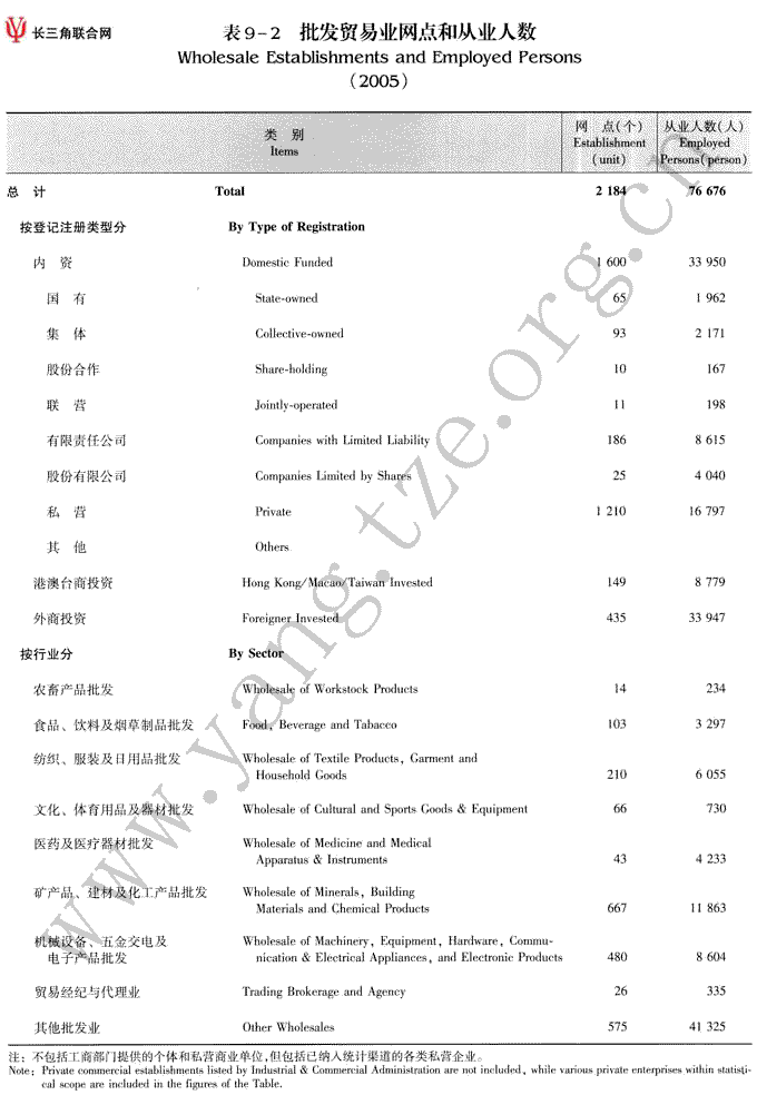 批发贸易业网点和从业人数(2005)