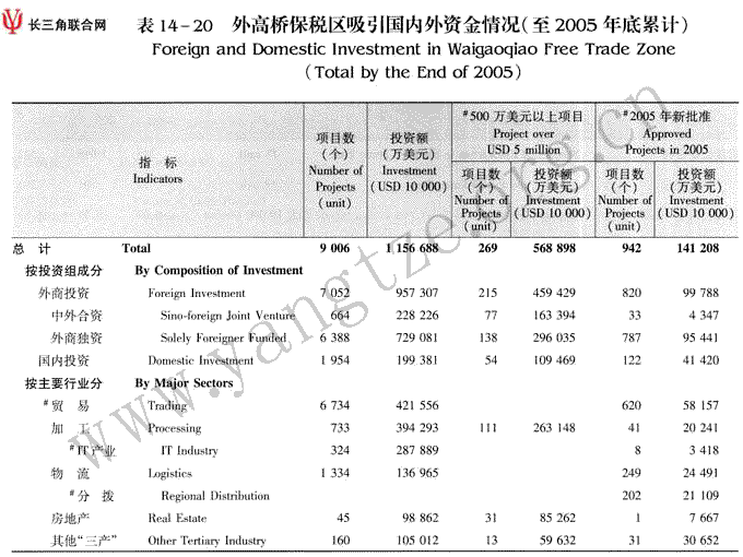 外高桥保税区吸引国内外资金情况(至2005年底累计)