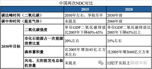但NDC通常不是说发布一次就完事的,通常会每隔段时间更新自己的目标以更加契合巴黎协定的总目标。截至目前,我国一共提交了两次NDC,分别在2015年和2020年。其中2015年的主要目标就是碳达峰,2020年的主要目标就是碳中和,都是重磅消息。