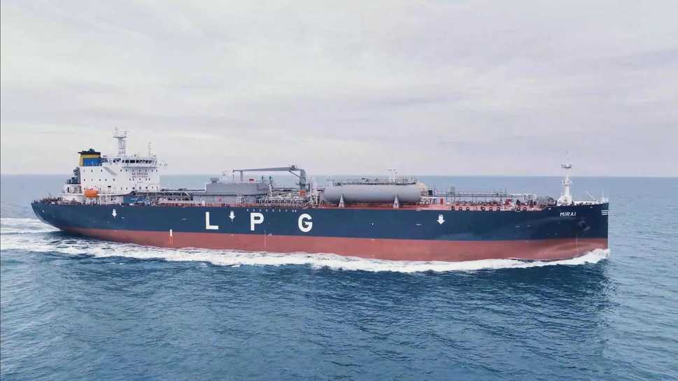 澎湃新闻记者从江南造船(集团)有限责任公司获悉,3月31日,江南造船为日本KUMIAI船舶株式会社建造的40000立方米中型全冷式液化气船(MGC)“MIRAI”号顺利交付。这是江南造船建造的国内首艘MGC,除可装载液化石油气(LPG)外,还可运输无水氨和氯乙烯单体(VCM)等石化产品。