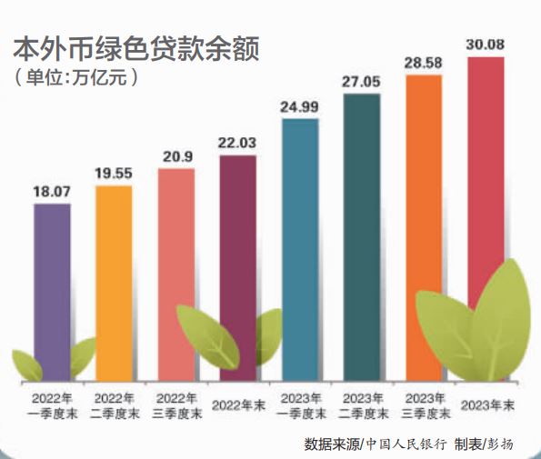 人民银行数据显示,截至2023年三季度末,我国绿色贷款余额28.58万亿元,同比增长36.8%,居全球首位;境内绿色债券市场余额1.98万亿元,居全球第二。