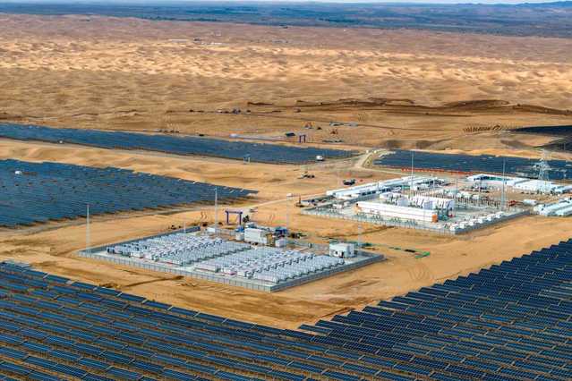 据了解,宁夏腾格里沙漠新能源基地二期200万千瓦光伏项目目前正在紧张施工中。该项目不仅是国家千万千瓦级“沙戈荒”基地中首个完成备案、开工、投产的基地项目,而且是“宁湘直流”特高压输电通道的重点配套工程。去年4月,一期100万千瓦光伏项目已成功并网发电,而二期项目在全面并网后,预计每年可向电网输送39.46亿千瓦时的清洁电能。