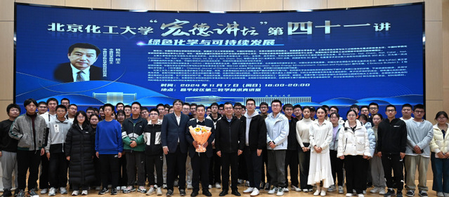 北化新闻网11月19日电 11月17日晚,北京化工大学“宏德讲坛”第四十一讲在昌平校区求真讲堂举行。中国科学院院士、发展中国家科学院院士韩布兴受邀作“绿色化学与可持续发展”专题报告。化学工程学院院长程道建主持报告。