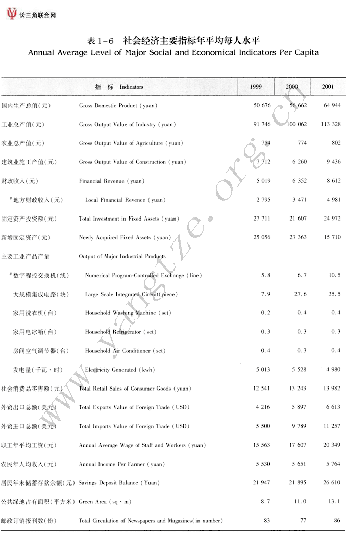 社会经济主要指标年平均每人水平