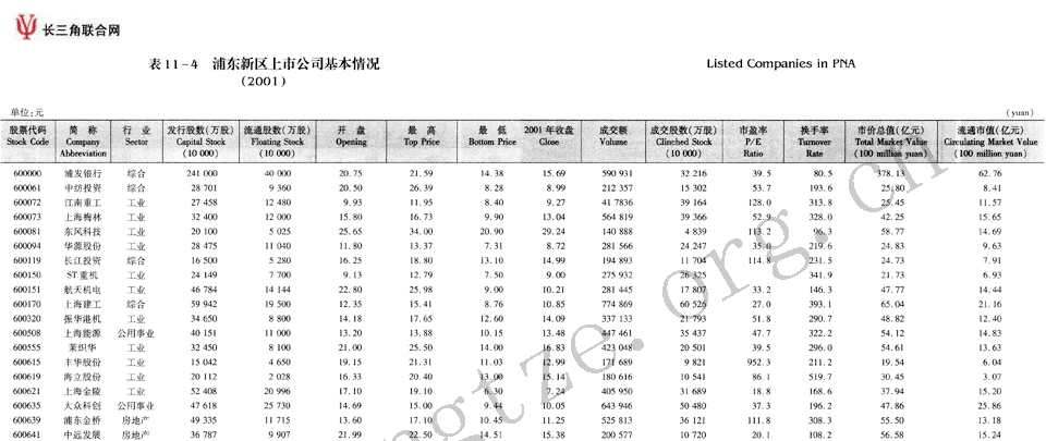 浦东新区上市公司基本情况(2001)