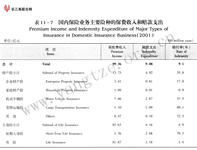 国内保险业务保费收入...