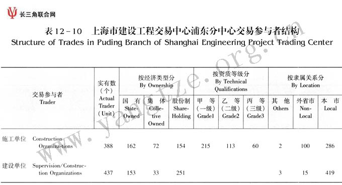 上海市建设工程交易中心浦东分中心交易参与者结构