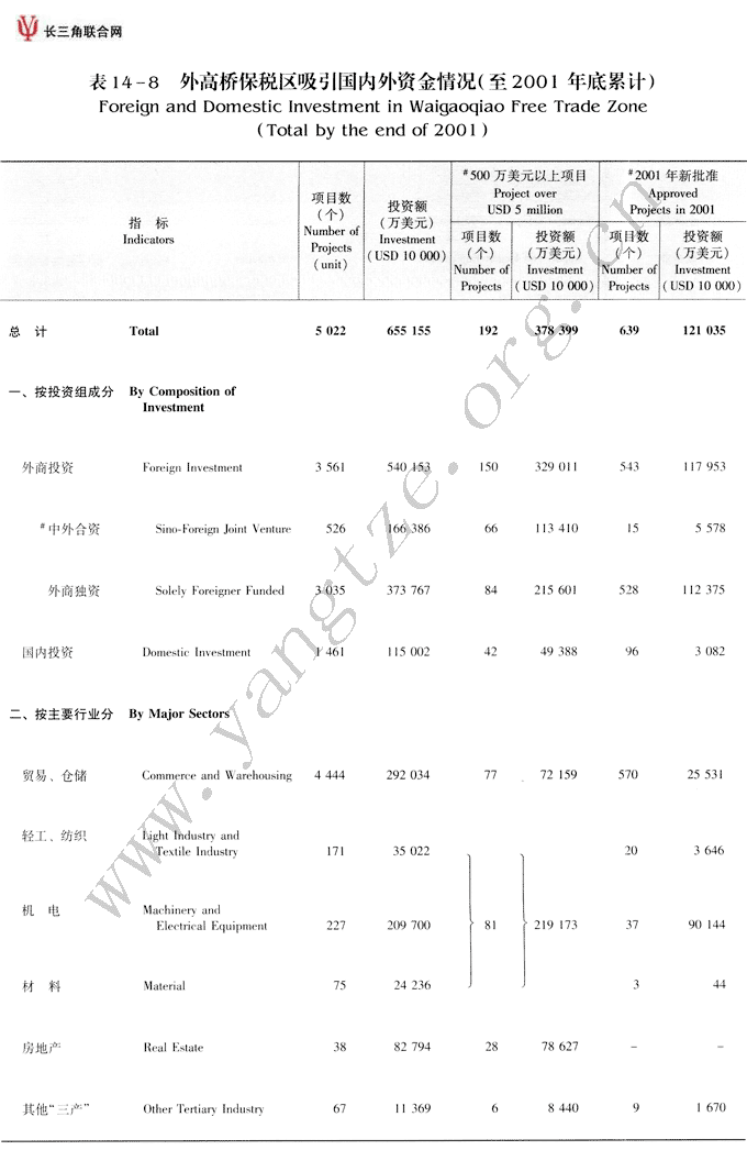 外高桥保税区吸引国内外资金情况(至2001年底累计)