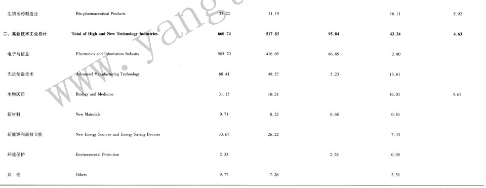 开发小区重点发展行业和高新技术工业总产值(2001)