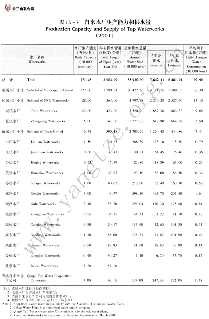 自来水厂生产能力和供...