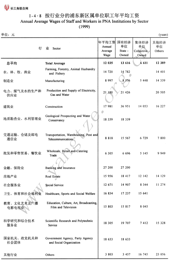 按行业分的浦东新区属单位职工年平均工资