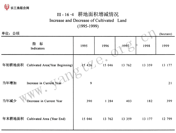 耕地面积(1990-1999)
