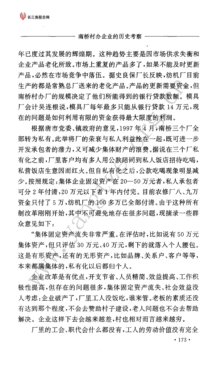 当前位置:首页 > 研究著作 > 江苏 > 20世纪常熟农村社会变迁 > 南桥村办企业的历史考察