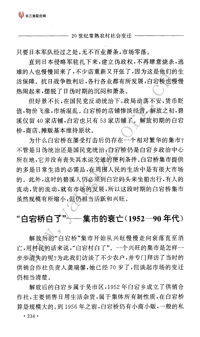 当前位置:首页 > 研究著作 > 江苏 > 20世纪常熟农村社会变迁 > 白宕村集市的变迁