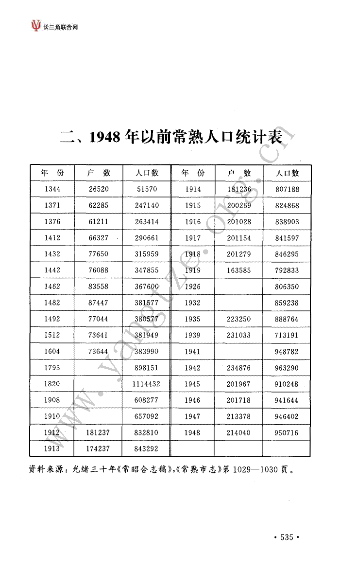 二、1948年以前常熟人口统计表
