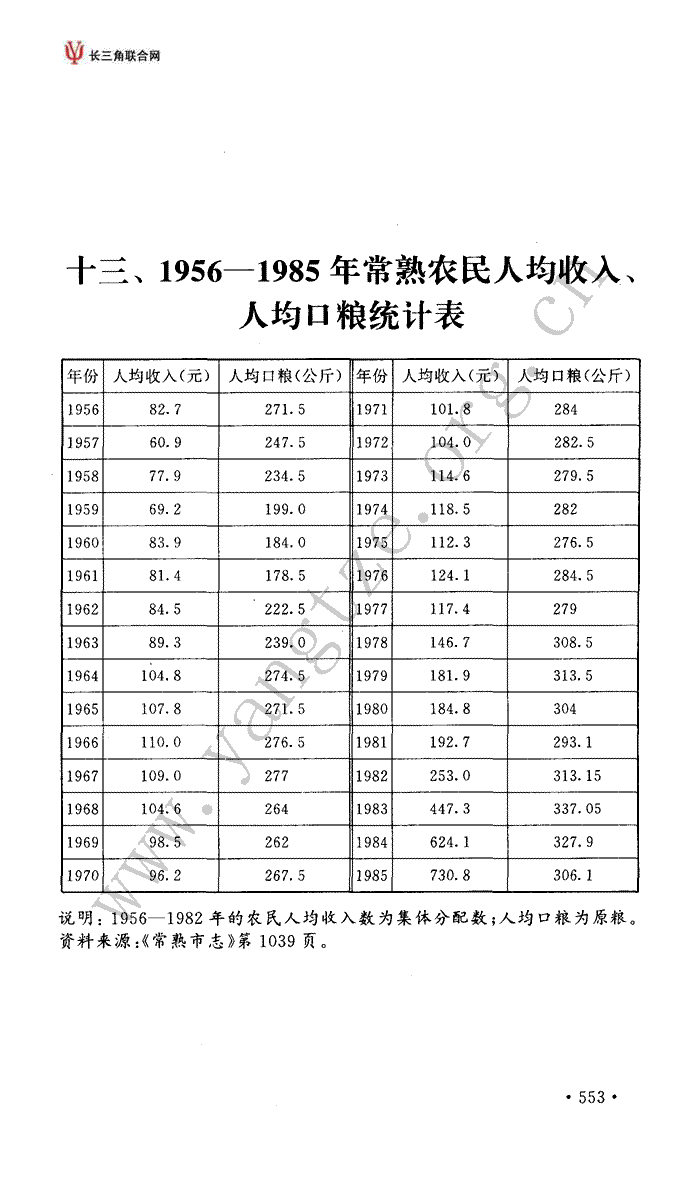 十三、1956-1985年常熟农民人均收入、人均口粮统计表