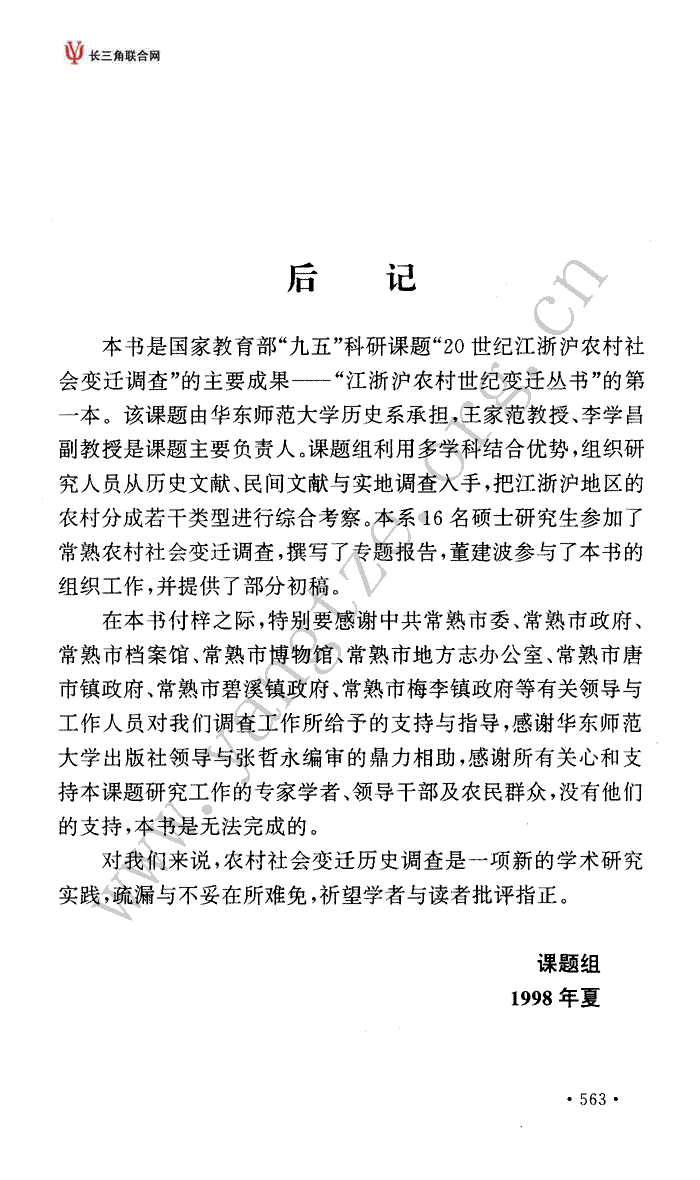 当前位置:首页 > 研究著作 > 江苏 > 20世纪常熟农村社会变迁 > 后记