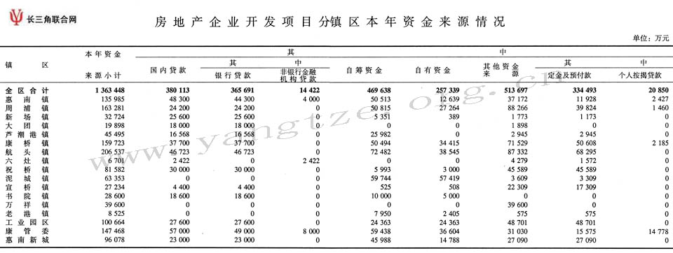 房地产企业开发项目分镇区本年资金来源情况