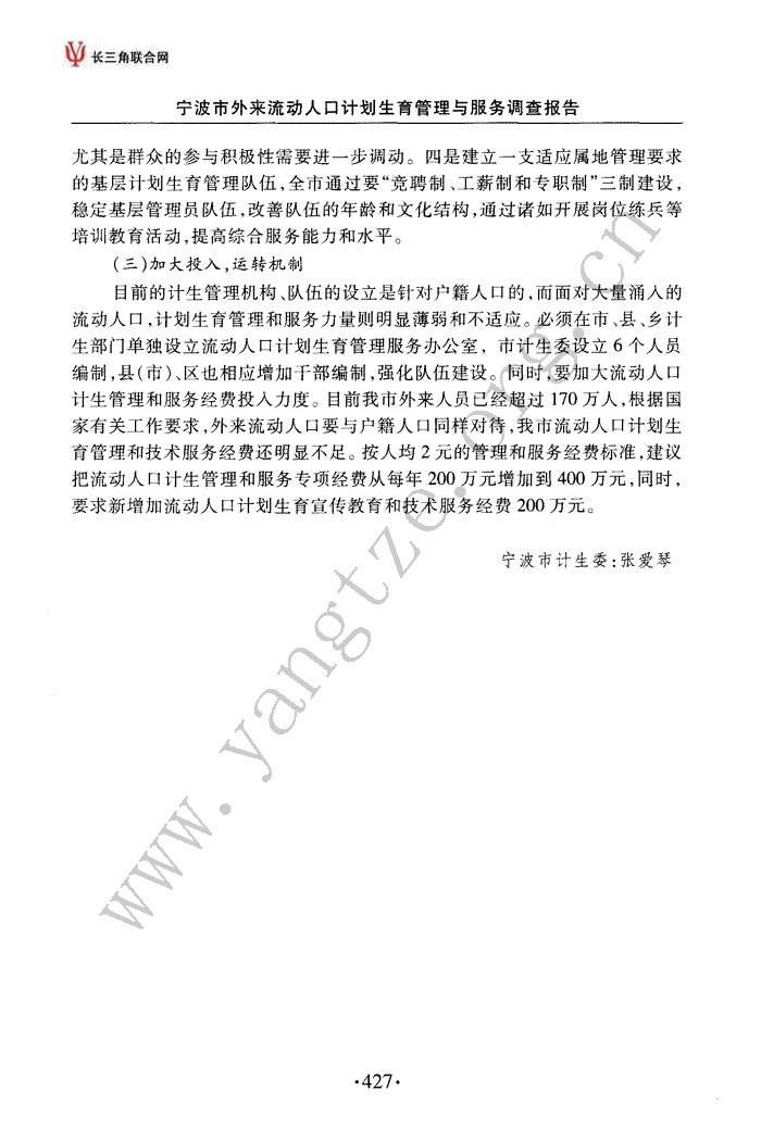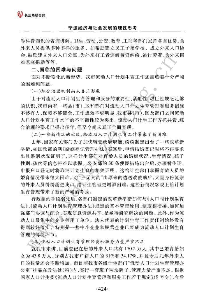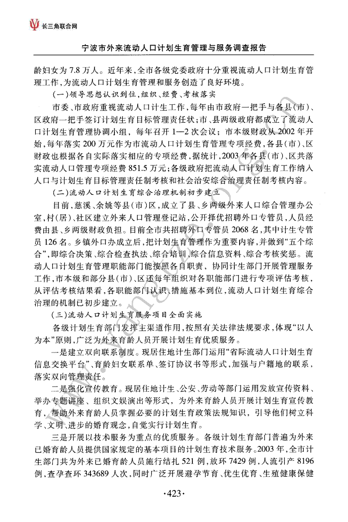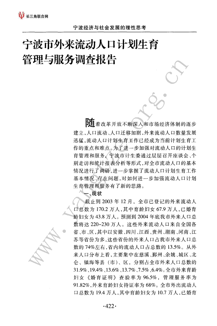 第六编 科教文卫 宁波市外来流动人口计划生育管理与服务调查报告