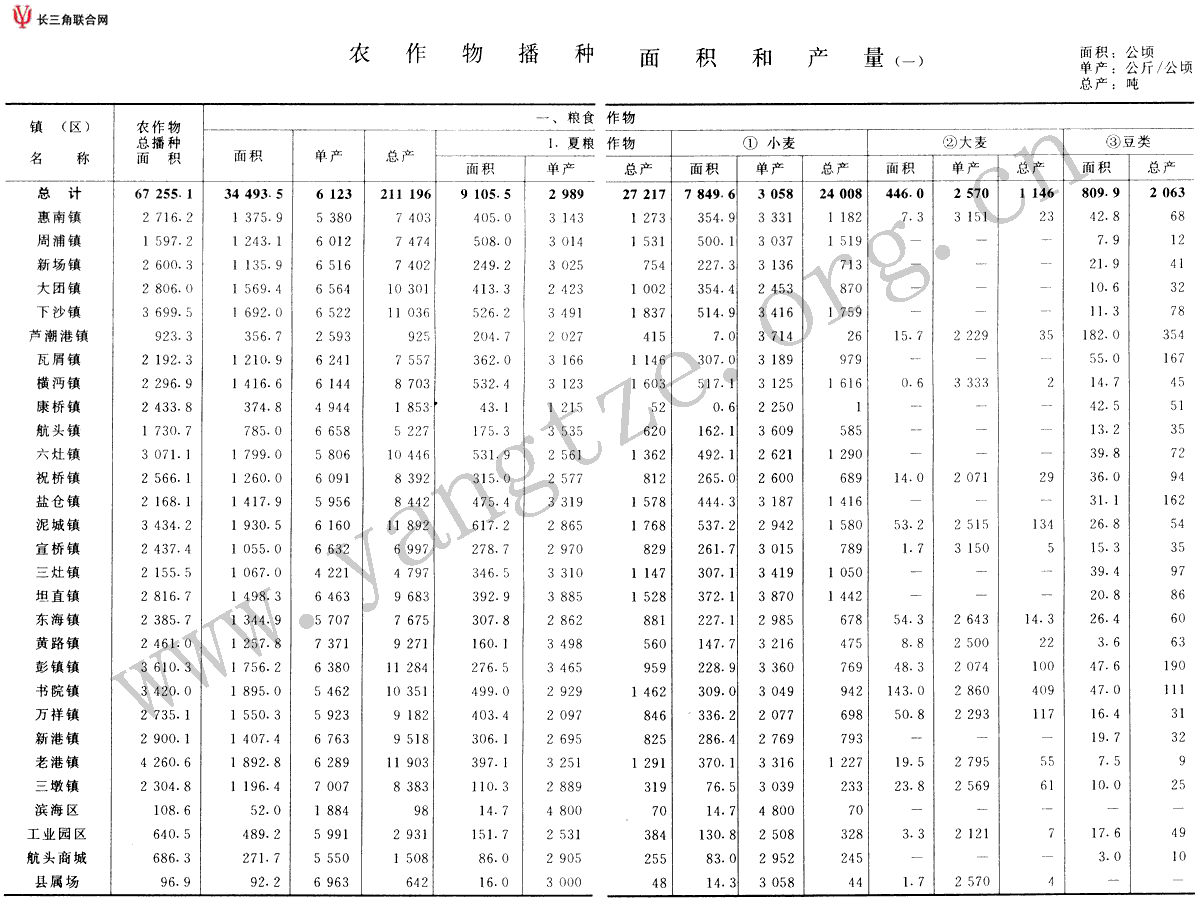 农作物播种面积和产量