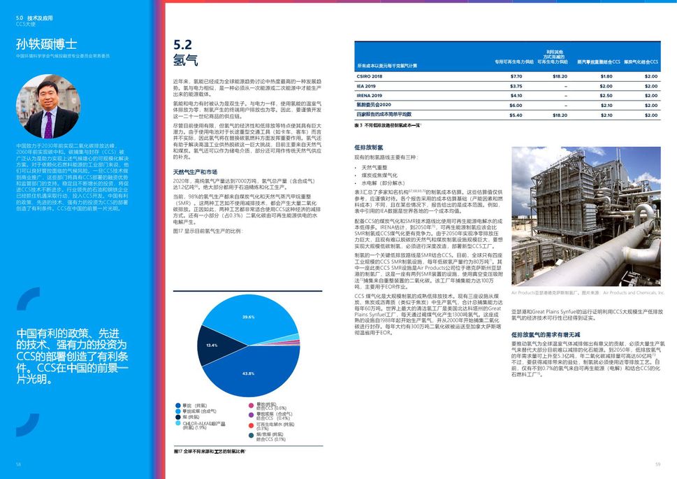 在那些难以减排部门的脱碳过程中,氢将有很大可能发挥重要作用。同时,氢也可能成为住宅供暖和灵活发电重要的能源来源。煤或天然气结合CCS技术是成本最低廉的低碳制氢方式。对于无法为电解制氢提供大量可负担可再生电力的地区和化石燃料价格较低的地区而言,该方案仍是成本最低的选择。为了使难以减排的行业实现脱碳和净零排放,全球的氢产量必须实现大幅增长,从现在的年产7000万吨i增至本世纪中叶的年产4.25亿——6.50亿吨。
