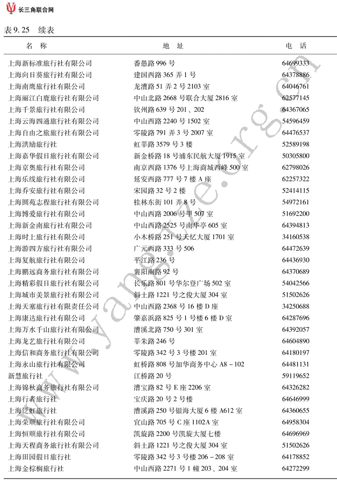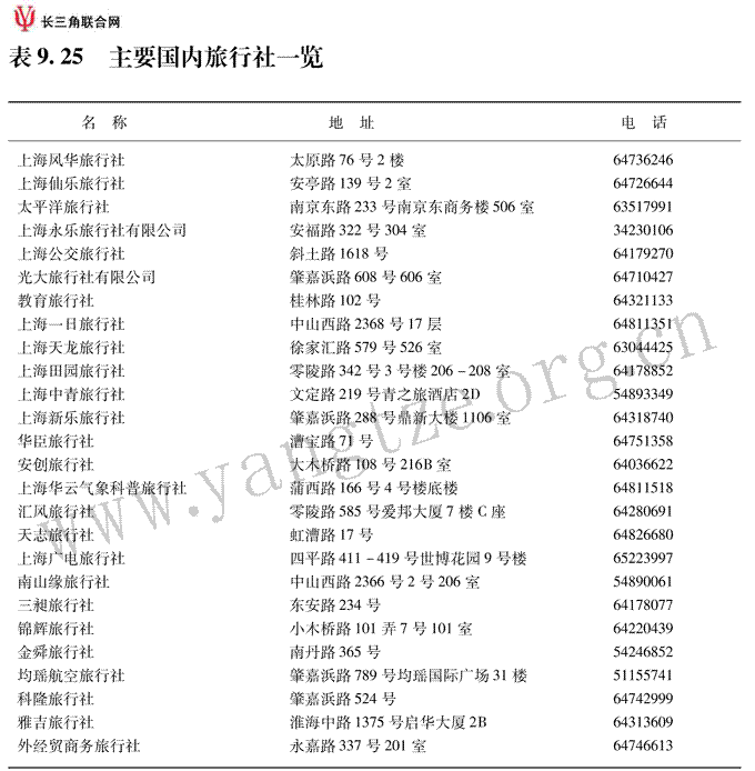 主要国内旅行社一览