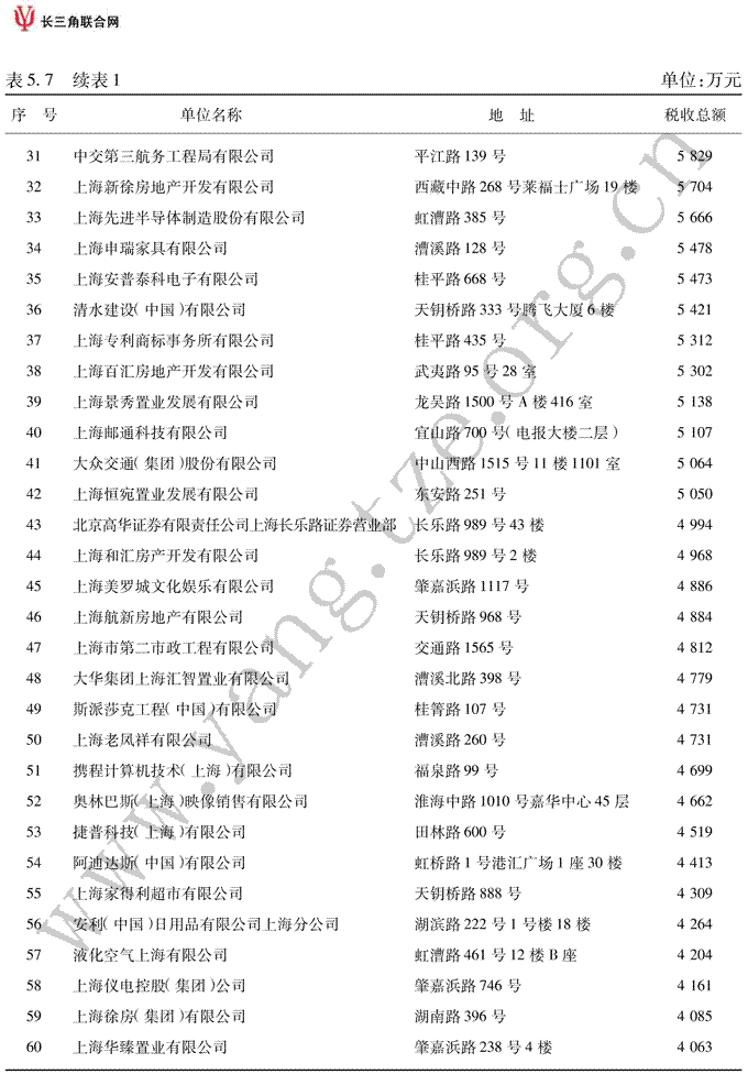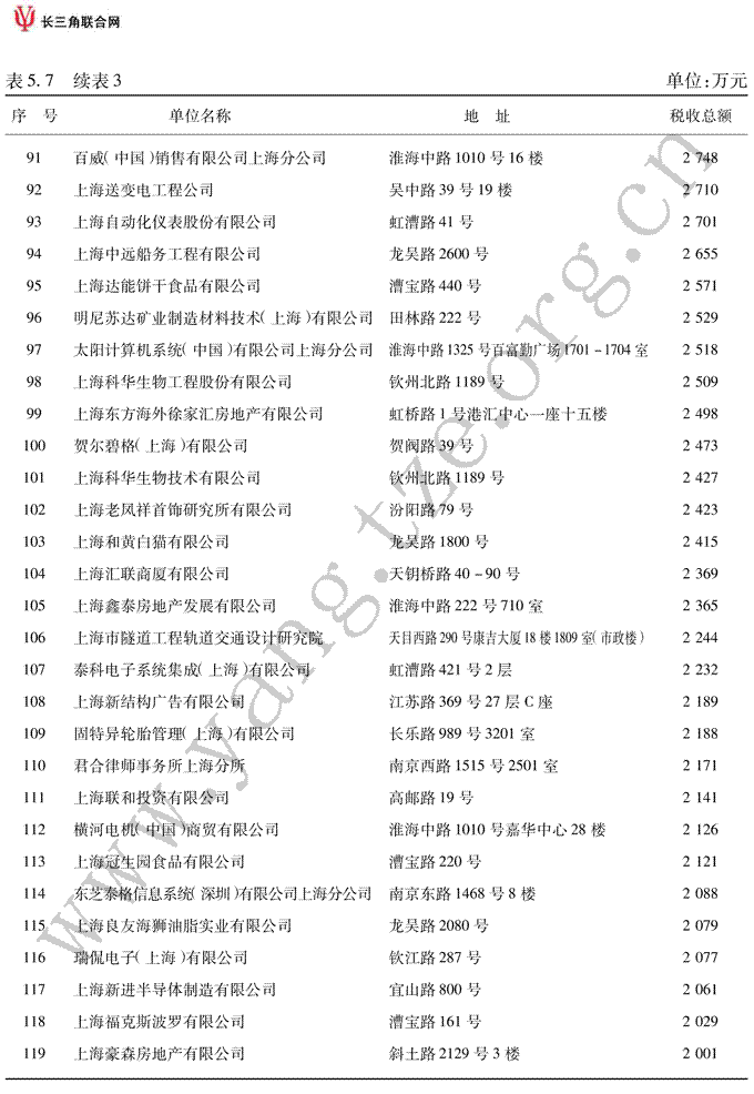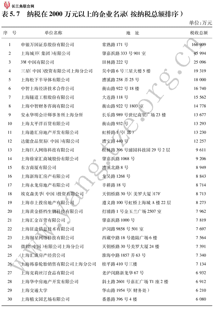 纳税在2000万元以上的企业名录(按纳税总额排)