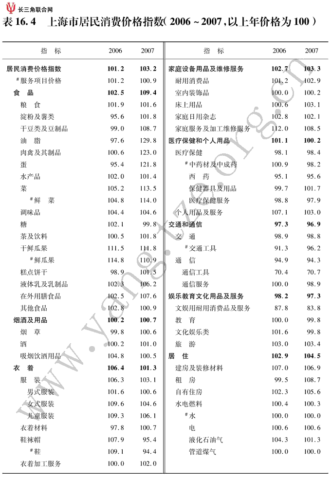 上海市居民消费价格指数(2006-2007 以上年价格为100)