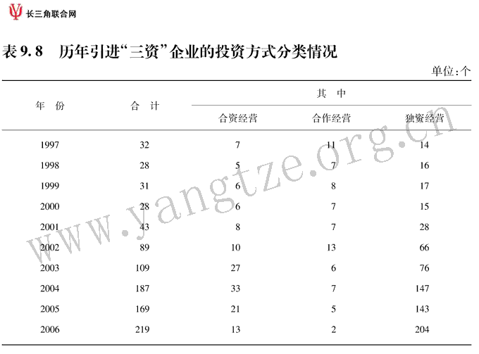 历年引进"三资"企业的投资方式分类情况