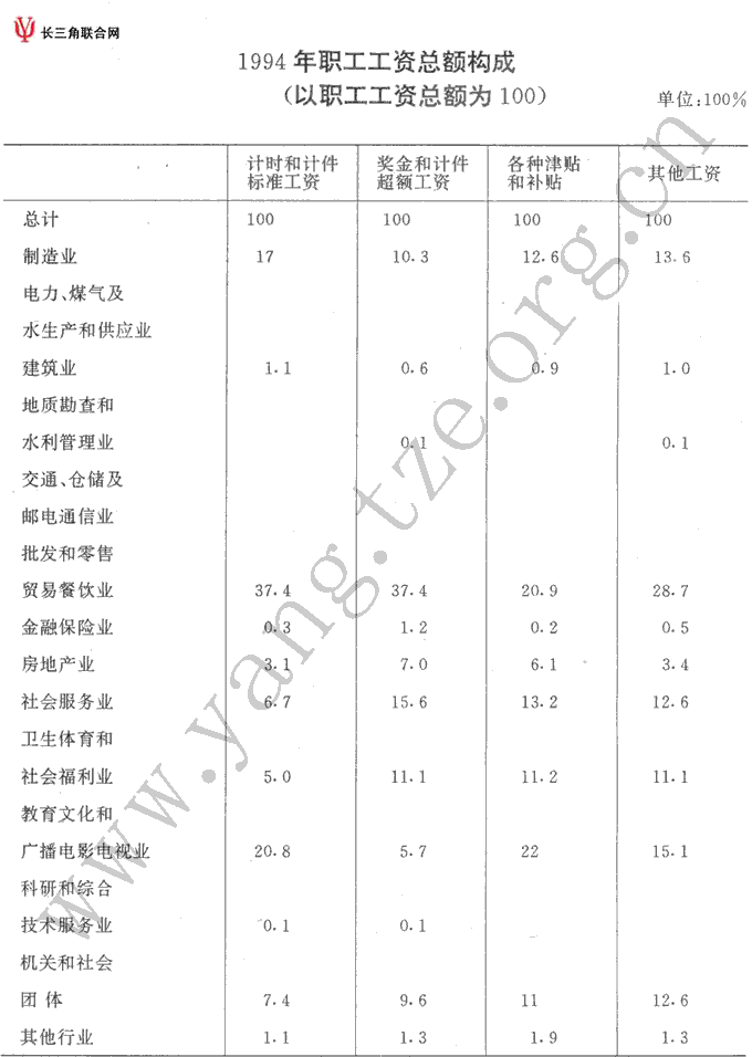 1994年劳动工资概况