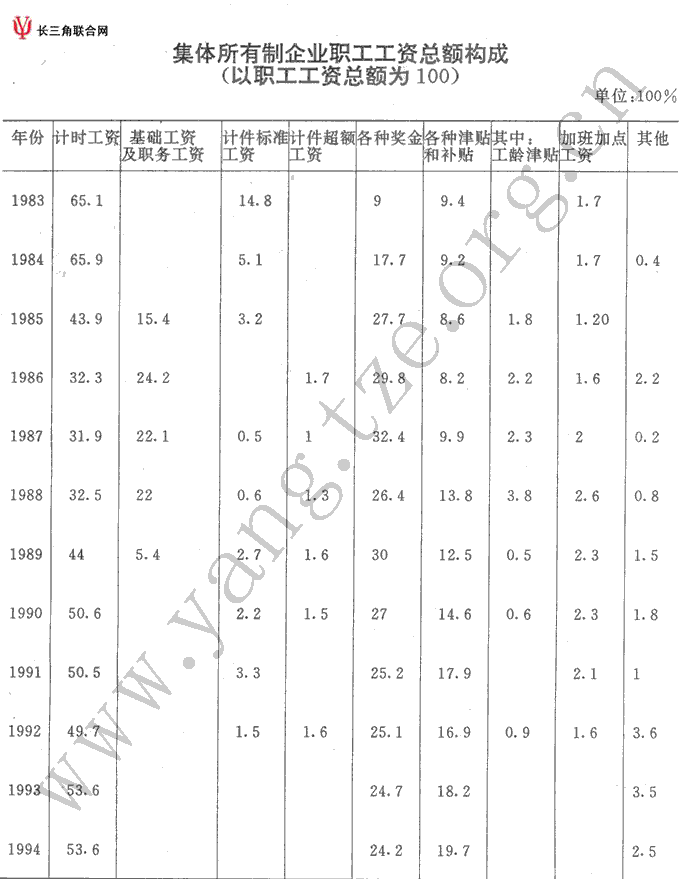 集体所有制企业职工工资总额构成(以职工工资总额为100)
