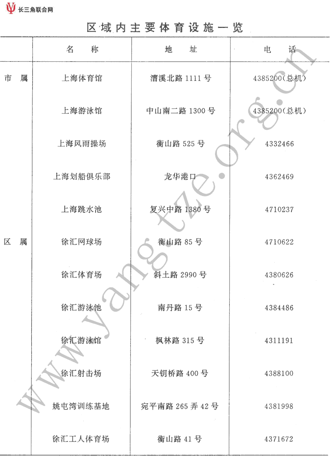 区域内主要体育设施一览