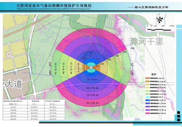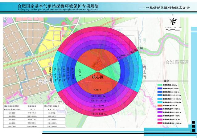 合肥国家基本气象站观测场500米范围周边建、构筑物限高表(单位:米)