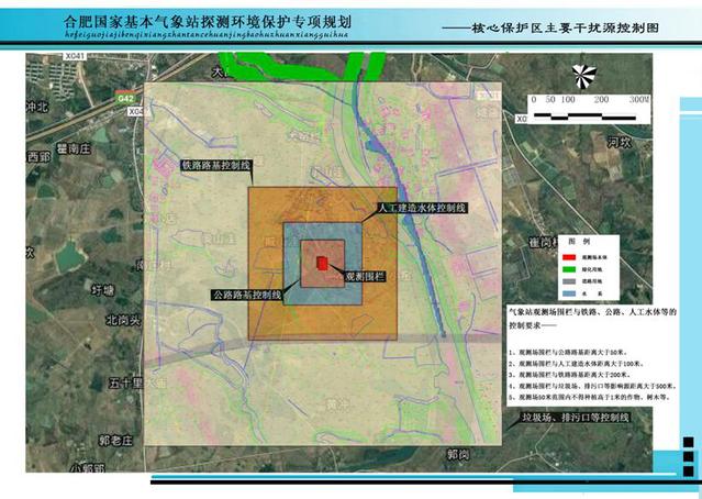 根据气象台站的级别、所在区域总体规划以及相关规划确定建设控制地带的界线,根据《气象设施和气象探测环境保护条例》原则确定合肥国家基本气象站观测环境建设控制地带为观测场围栏外移50~500米空间范围内。