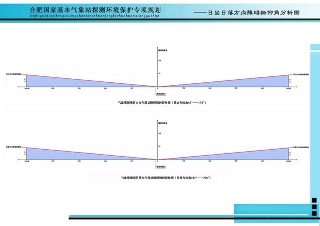 第十五条 合肥国家基本气象站一般保护区范围控制:建设障碍物的相对高度应满足附表3,观测场日出、日落方向的建、构筑物的高度角≤5°。