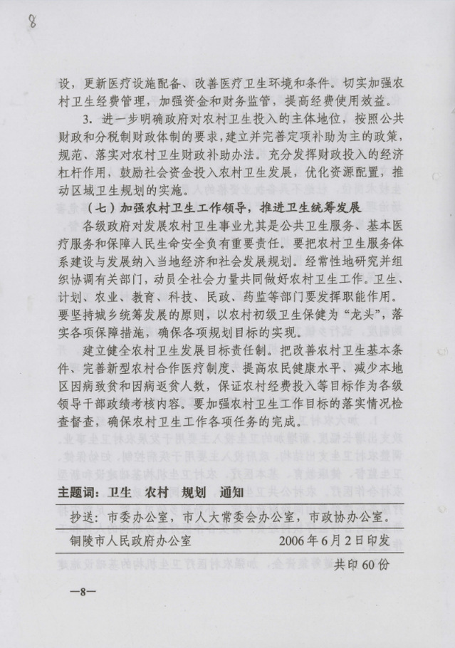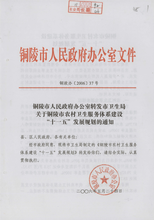 铜陵市农村卫生服务体系建设“十一五”发展规划